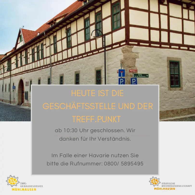 Wichtiger Hinweis in eigener Sache: heute am Freitag, den 13.12.2024 bleibt die Geschäftstelle und der Treff.Punkt ab 10:30 Uhr geschlossen.